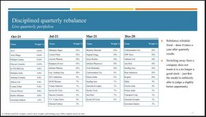 Upside AI belives in a disciplined rebalancing schedule that is done after quarterly results, 4 times a year. Regular switching ensures that stock selection is done with no bias and includes a stock with a relatively better opportunity.